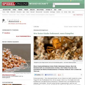- Die Welt, 12.9.2012, Kompakt: Ameisenköniginnen schulen zu Kriegerinnen um